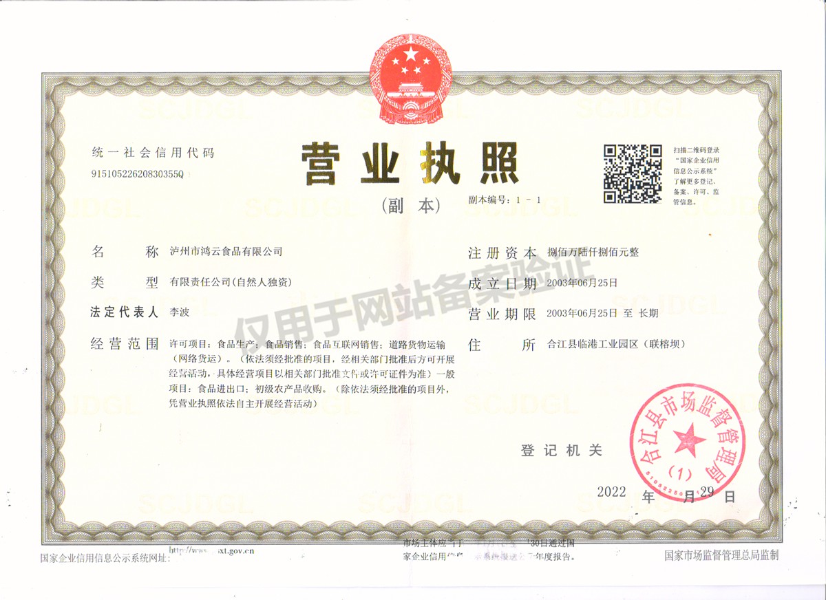 版權(quán)所有:瀘州市鴻云食品有限公司 電話(huà):0830-5252333 質(zhì)量監(jiān)督電話(huà):12365